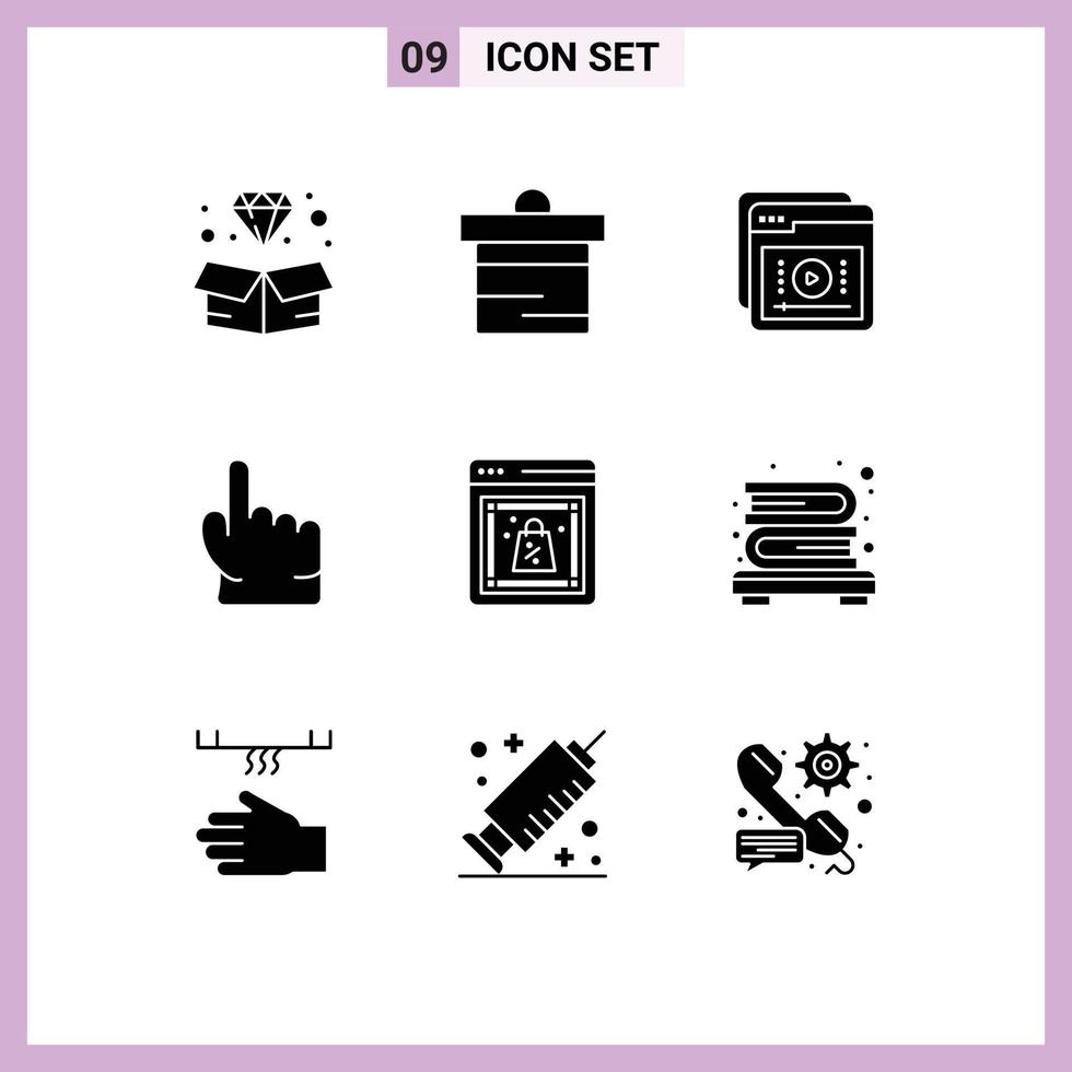 Group of 9 Modern Solid Glyphs Set for touch hand tutorials finger learning Editable Vector Design Elements Free Vector