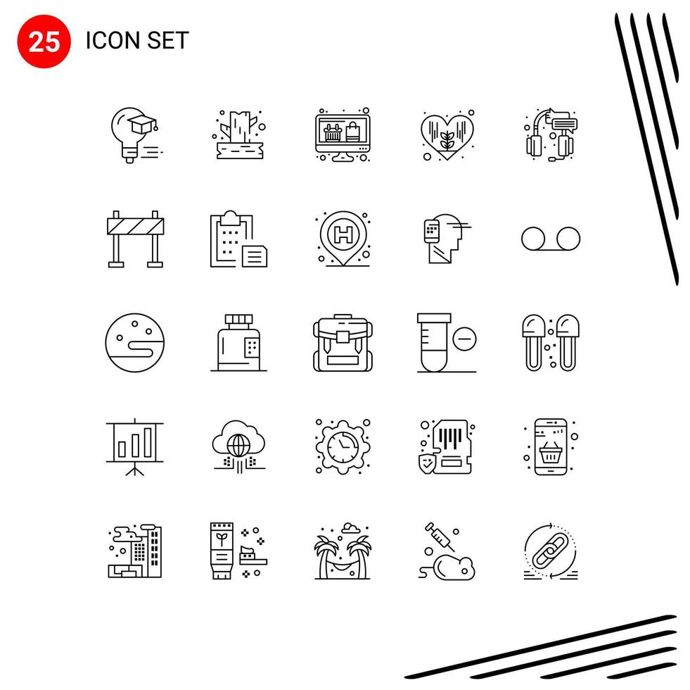 25 Line concept for Websites Mobile and Apps support center computer love environment Editable Vector Design Elements