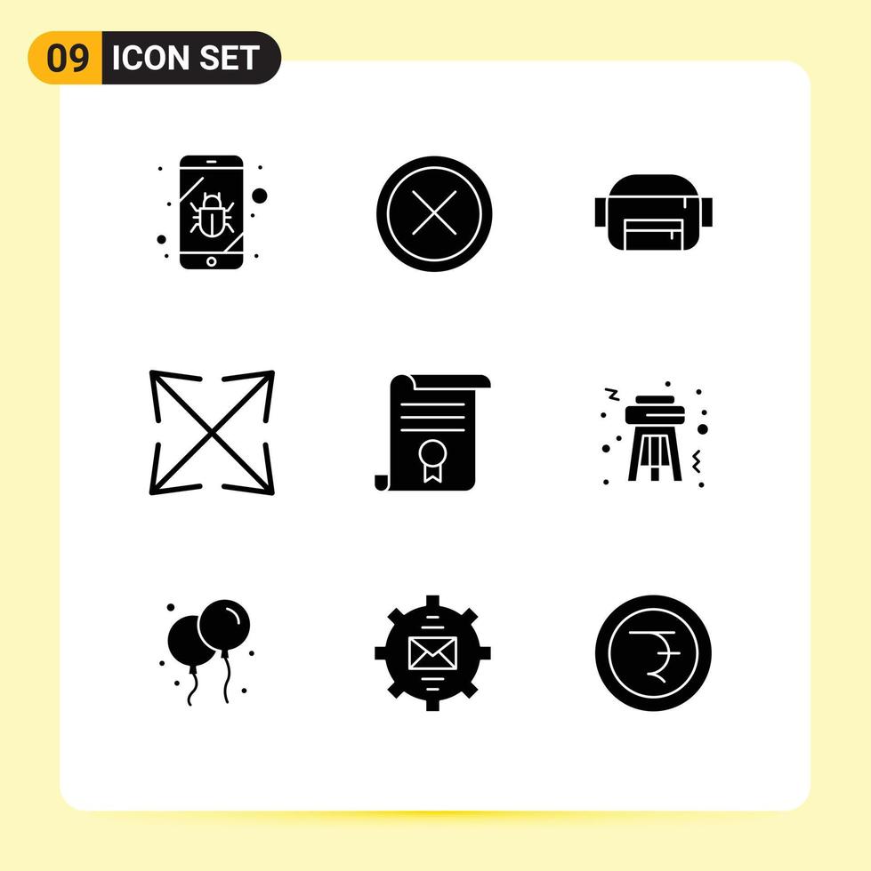 9 Universal Solid Glyphs Set for Web and Mobile Applications document degree remove certificate scale Editable Vector Design Elements