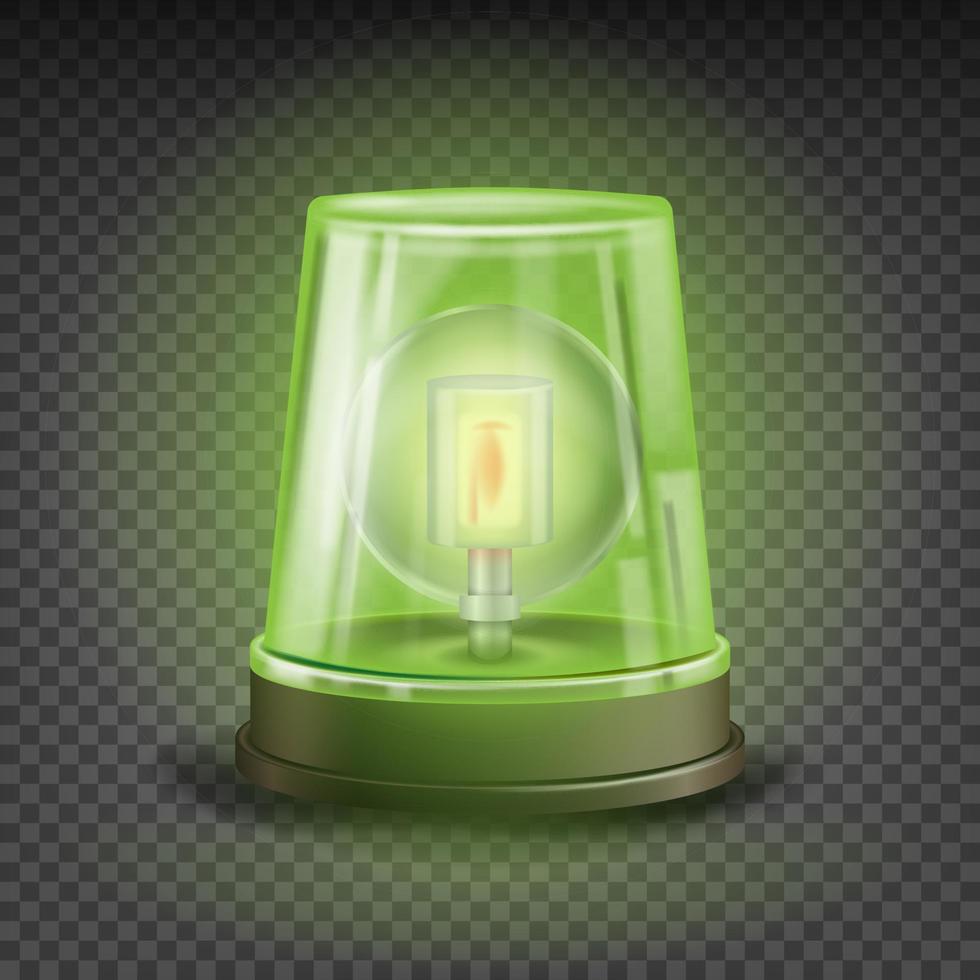 Green Flasher Siren Vector. Realistic Object. Light Effect. Rotation Beacon. Warning And Emergency Flashing Siren. Isolated On Transparent Background Illustration Pro Vector