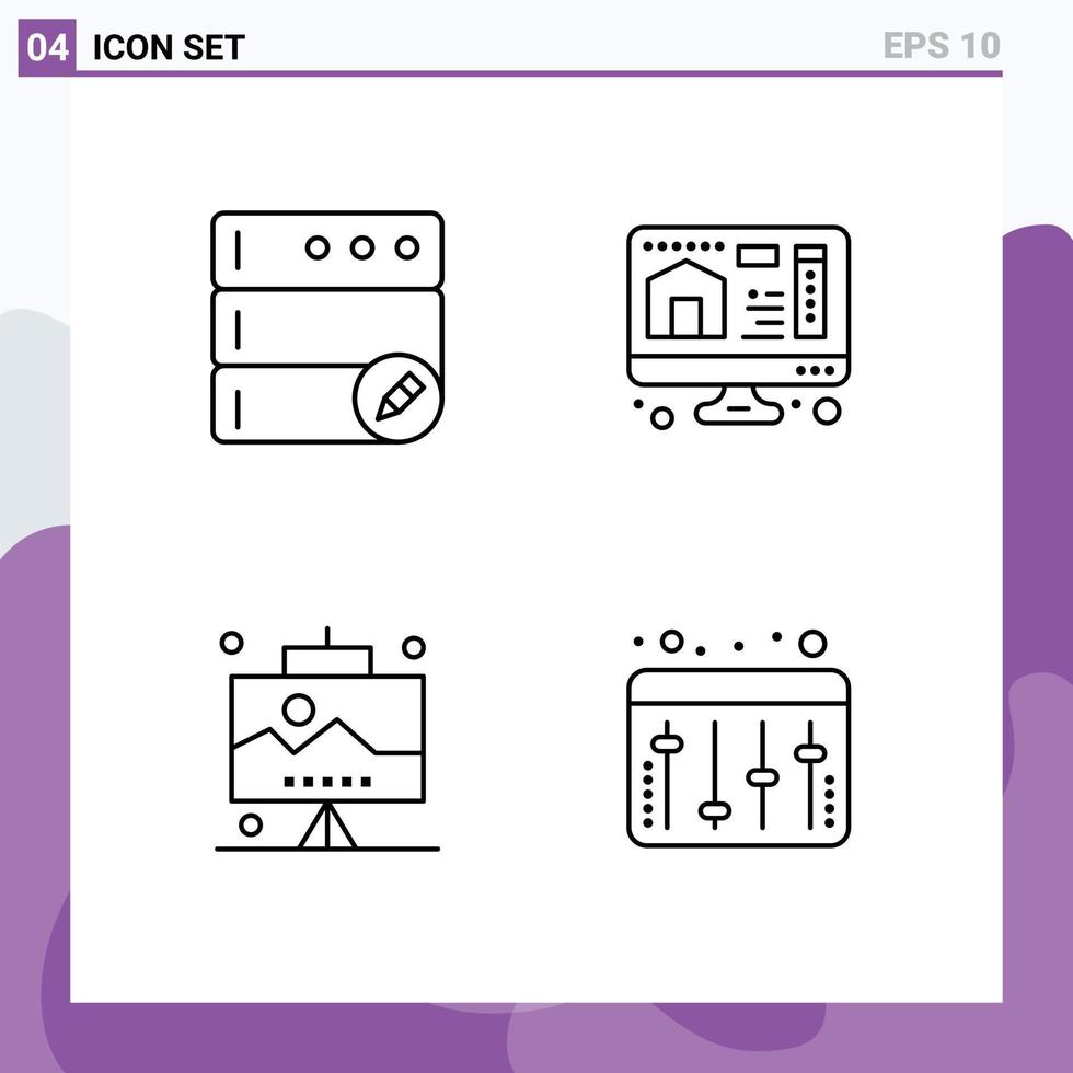 Set of 4 Modern UI Icons Symbols Signs for database work computer development audio Editable Vector Design Elements
