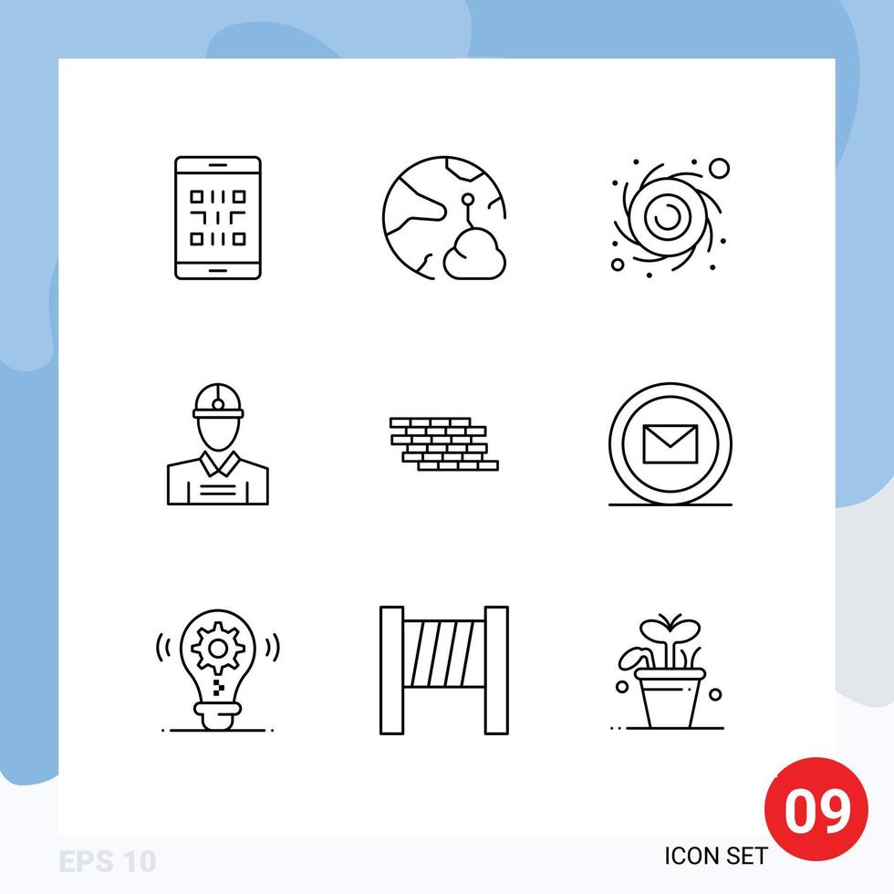 Pictogram Set of 9 Simple Outlines of firewall worker networking engineer planet Editable Vector Design Elements