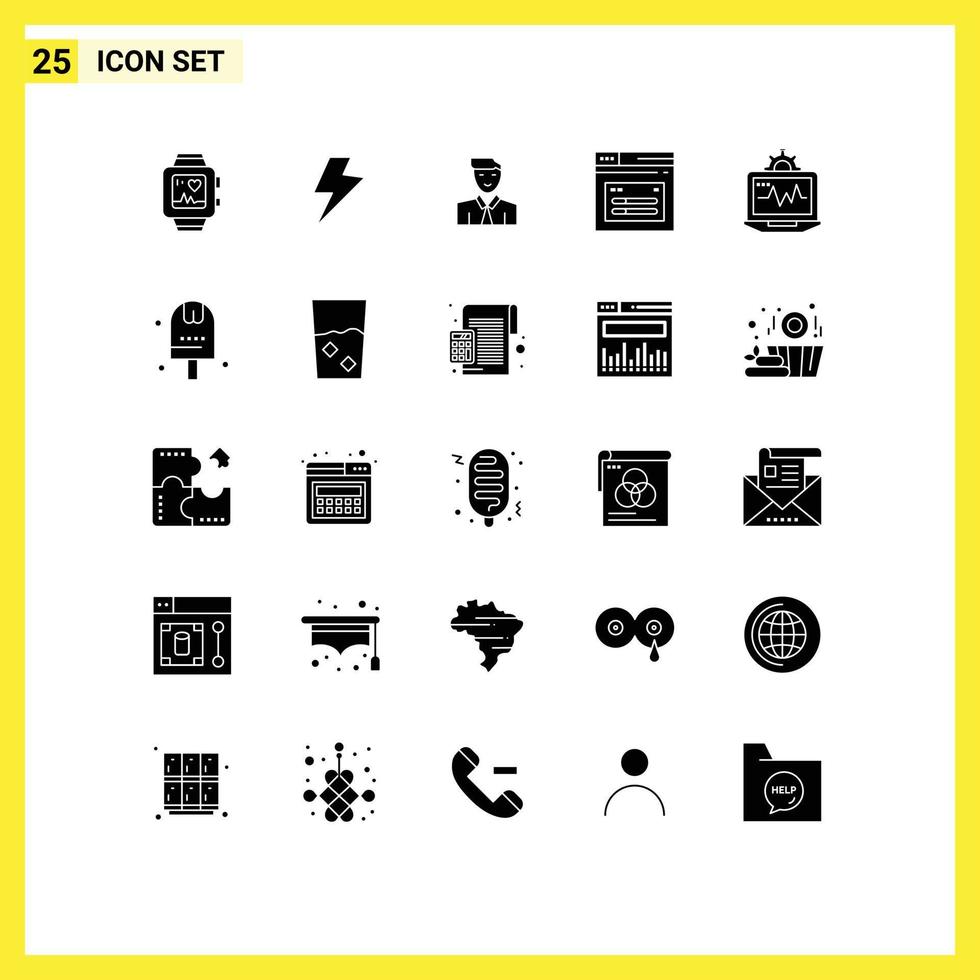 Universal Icon Symbols Group of 25 Modern Solid Glyphs of computer website user web internet Editable Vector Design Elements