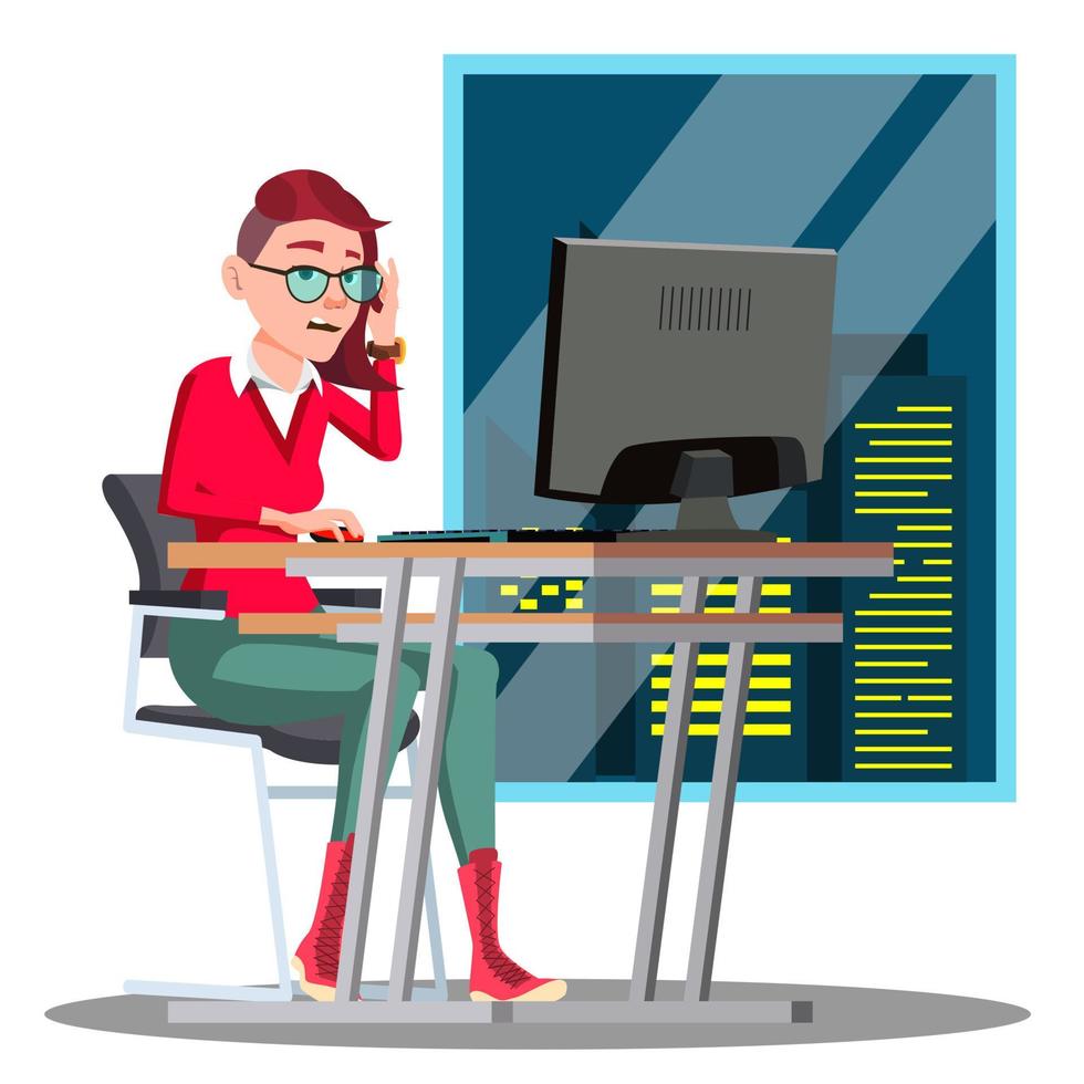 Overwork, Manager Working At The Table On Background Of Night Window Vector. Isolated Illustration Pro Vector