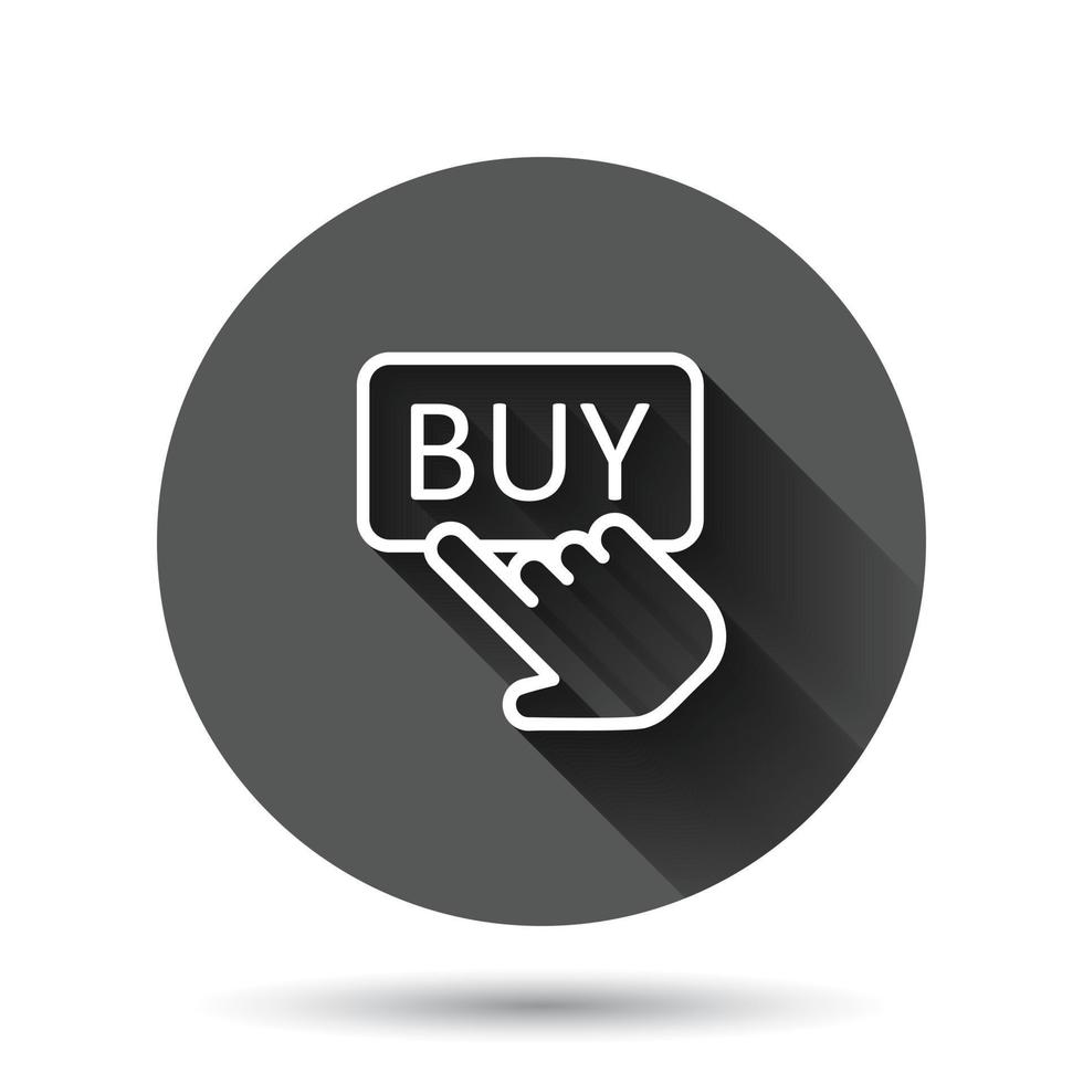 Buy shop icon in flat style. Finger cursor vector illustration on black round background with long shadow effect. Click button circle button business concept. Pro Vector and Pro SVG
