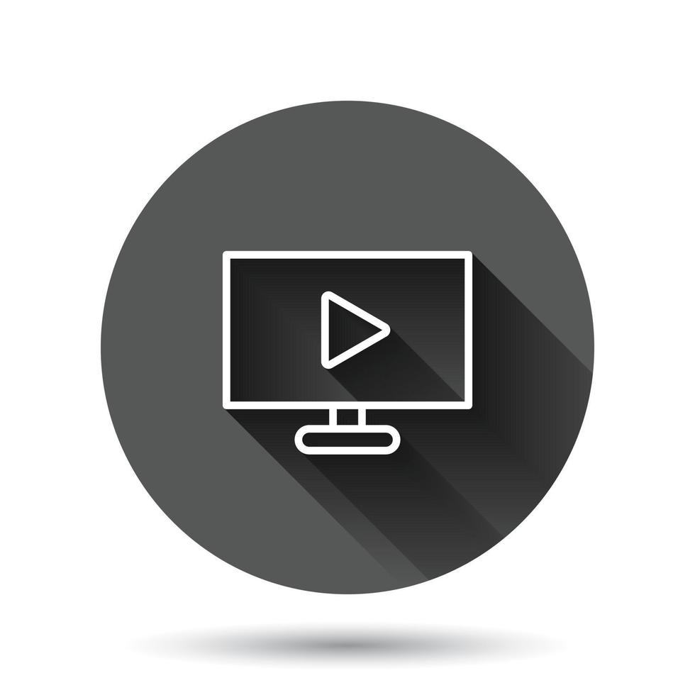 Tv screen icon in flat style. Video vector illustration on black round background with long shadow effect. Computer monitor circle button business concept. Pro Vector and Pro SVG