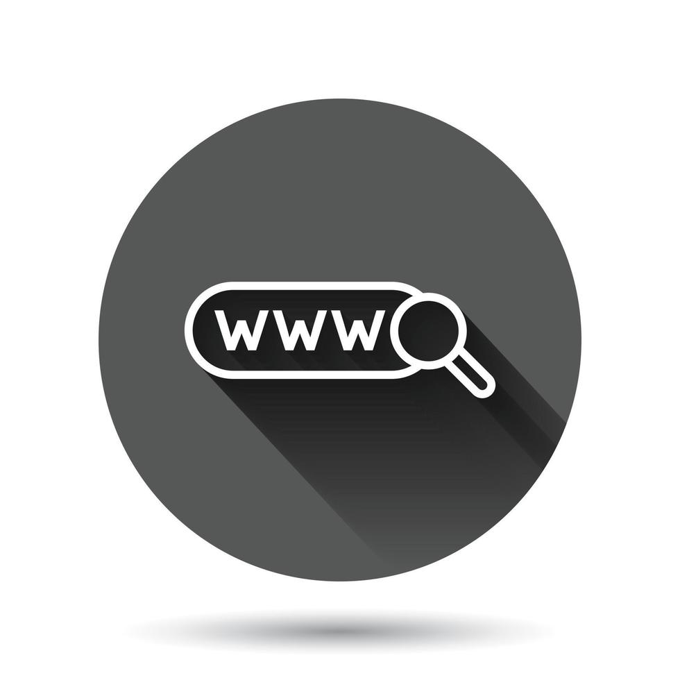 Global search icon in flat style. Website address vector illustration on black round background with long shadow effect. WWW network circle button business concept. Pro Vector and Pro SVG