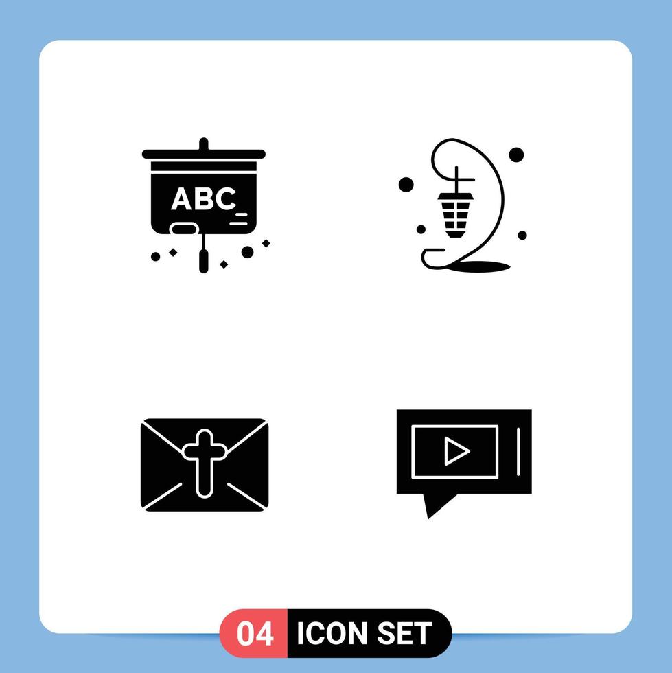 Mobile Interface Solid Glyph Set of 4 Pictograms of projector mail lantern lamp easter Editable Vector Design Elements Free Vector and Free SVG