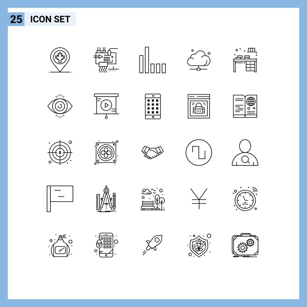 User Interface Pack of 25 Basic Lines of table server parts network cloud Editable Vector Design Elements