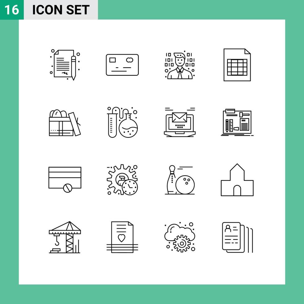 Set of 16 Commercial Outlines pack for lab birthday programmer box table Editable Vector Design Elements Free Vector