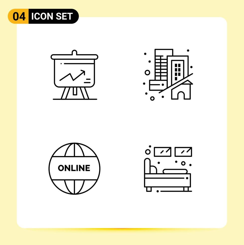 Mobile Interface Line Set of 4 Pictograms of analytics online board home world Editable Vector Design Elements Free Vector and Free SVG