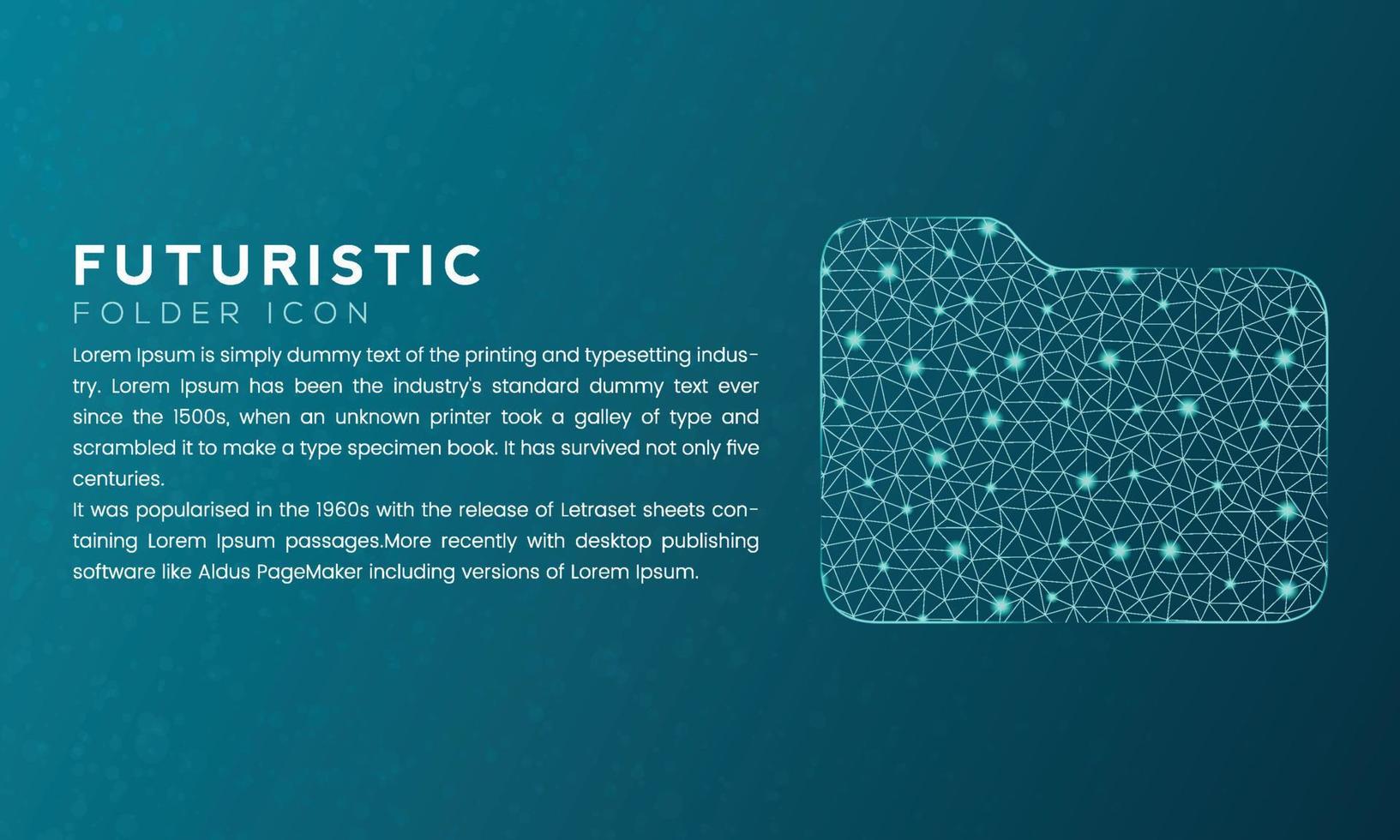 Blue futuristic folder or file icon concept with polygon node connected dots and neon effect Pro Vector