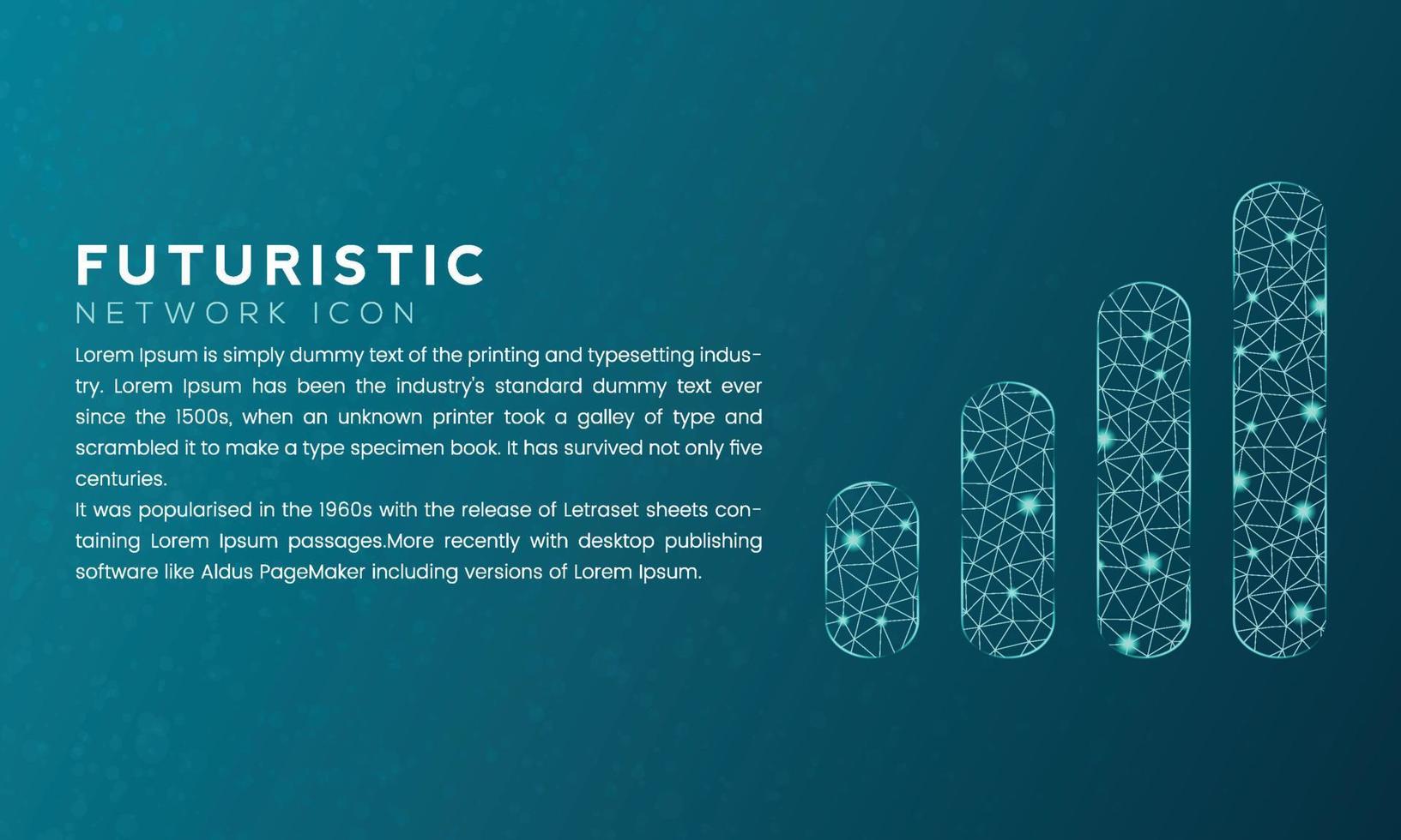 Blue futuristic network icon concept with polygon node connected dots and neon effect Pro Vector