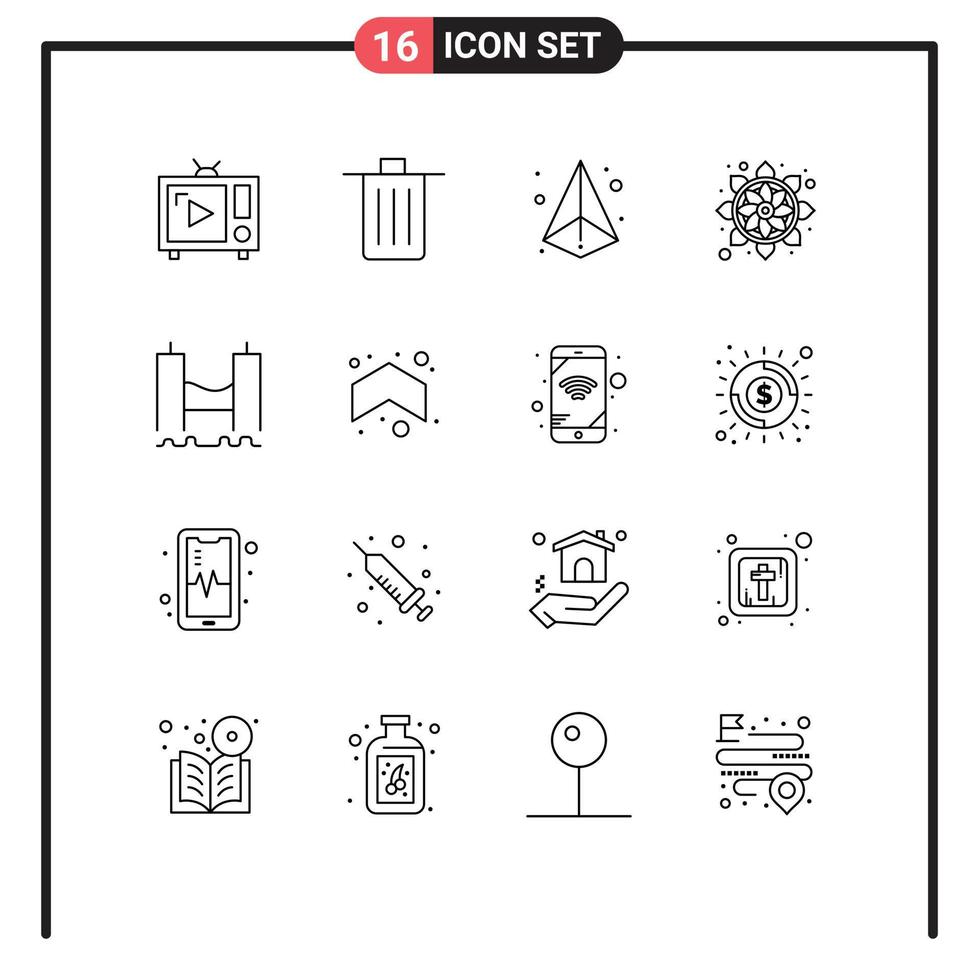 Mobile Interface Outline Set of 16 Pictograms of rangoli india garbage flower triangle Editable Vector Design Elements Free Vector