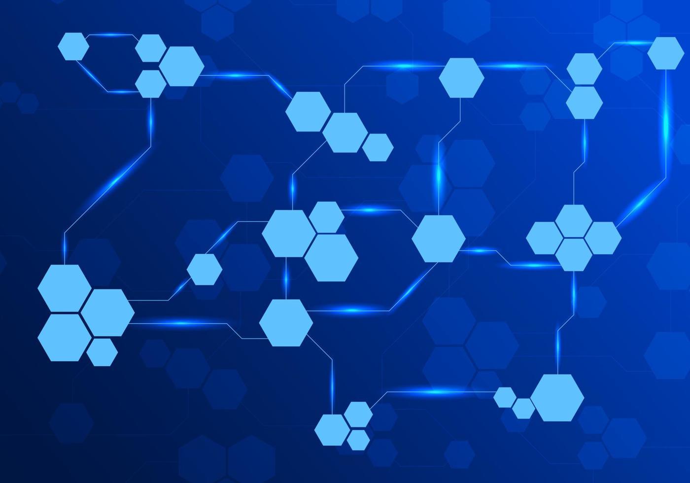 Technology hexagonal circuit board data connection background shows the flow of data Pro Vector