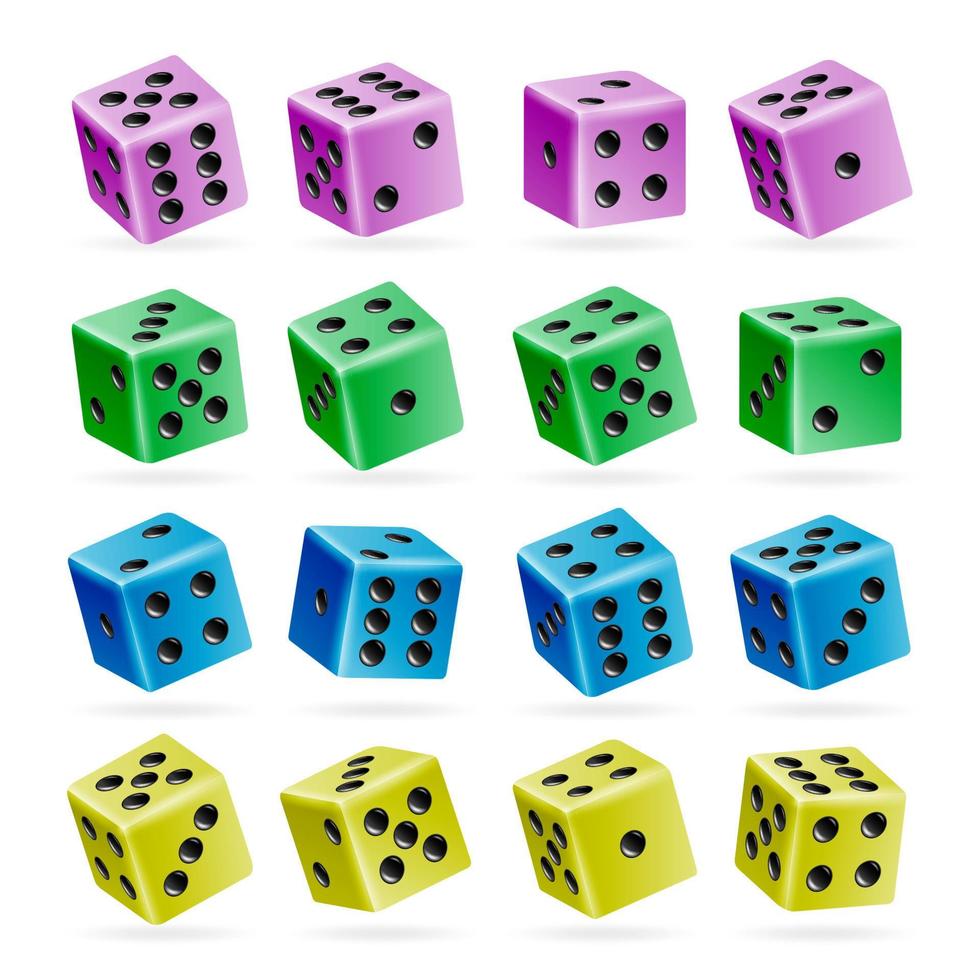 Playing Dice Vector Set. 3d Realistic Cubes With Dot Numbers. Good For Playing Board Casino Game. Isolated On White. Set Of Dice Rolls Pro Vector