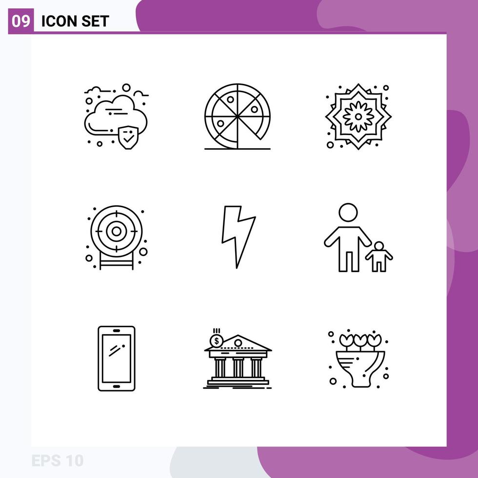 Modern Set of 9 Outlines and symbols such as dad ui flower basic target Editable Vector Design Elements