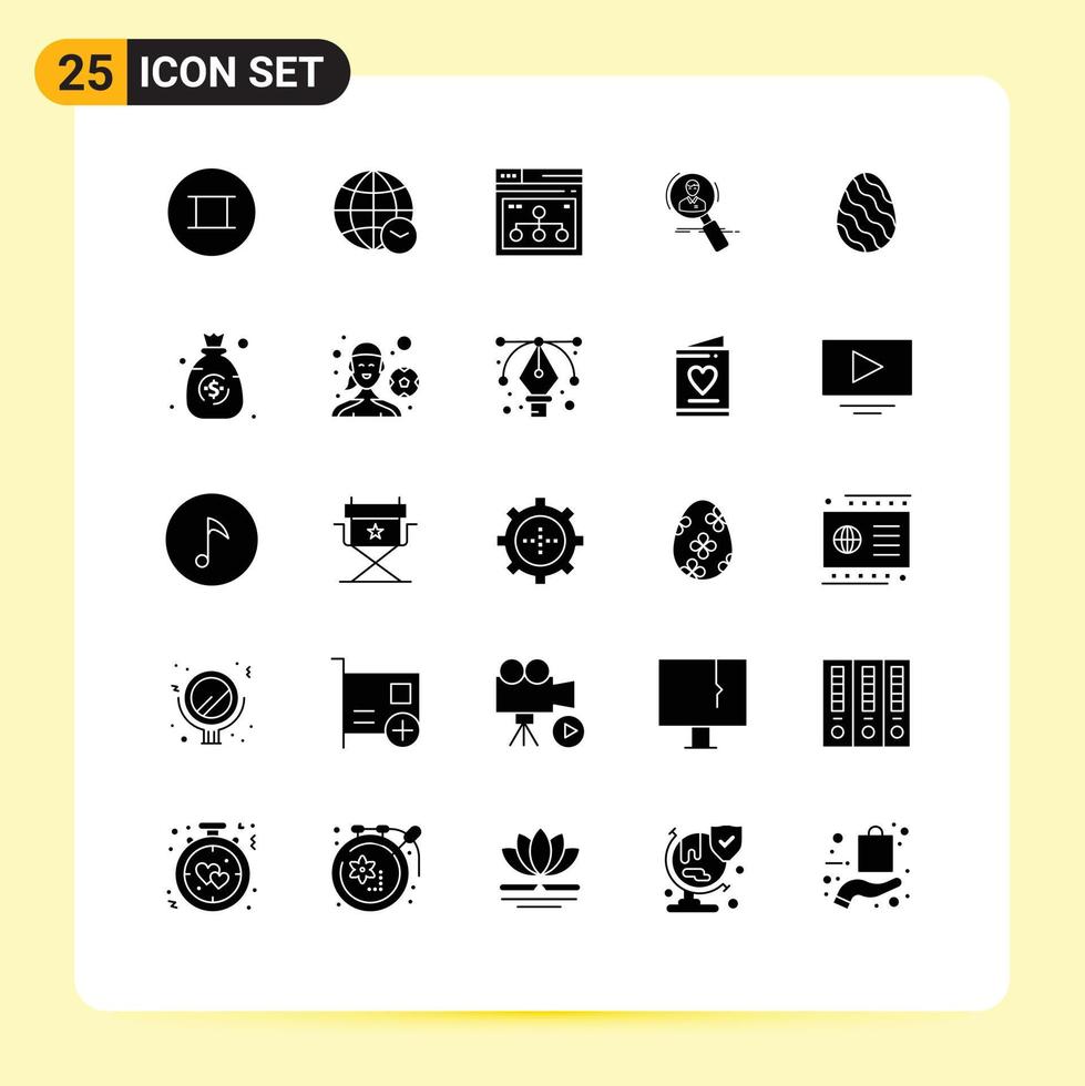 User Interface Pack of 25 Basic Solid Glyphs of resources hunting page hr search Editable Vector Design Elements Free Vector and Free SVG
