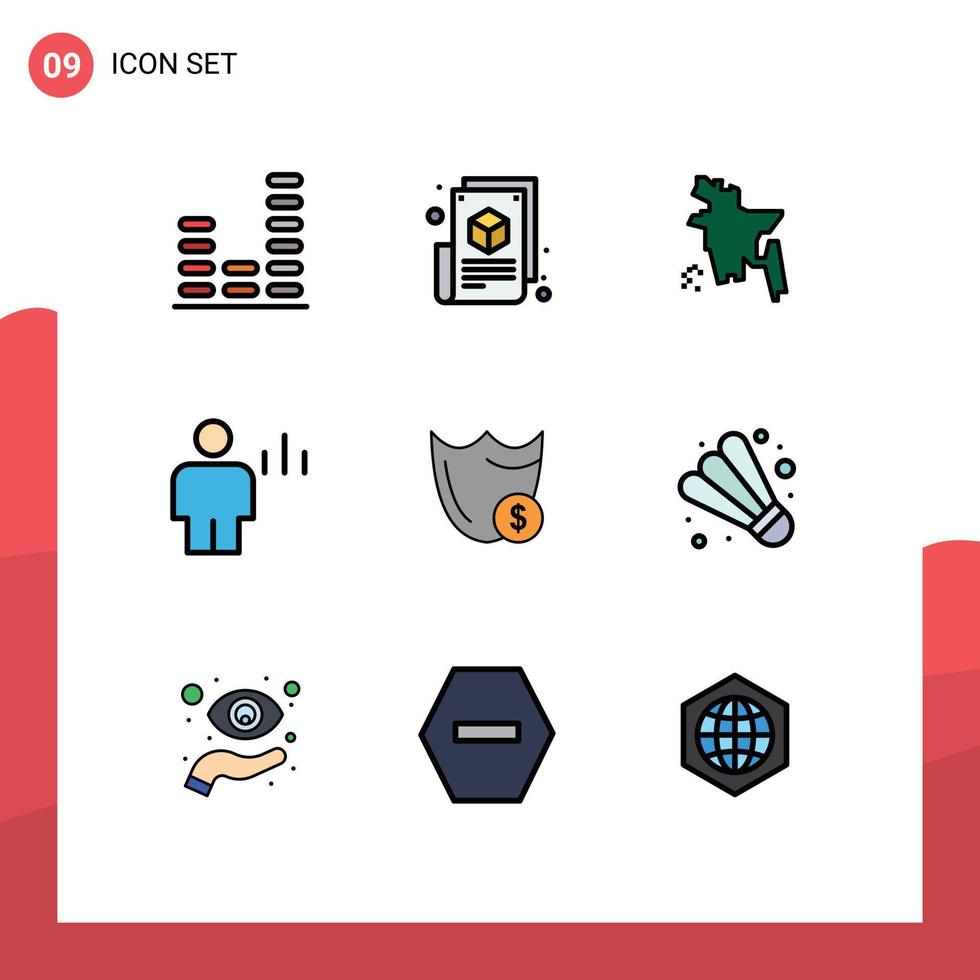 Set of 9 Modern UI Icons Symbols Signs for shield graph design body analytics Editable Vector Design Elements