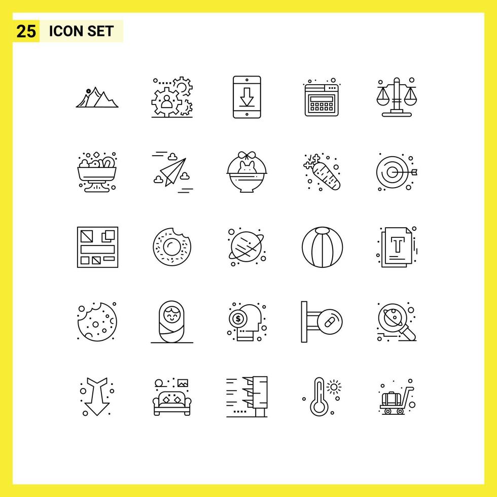 User Interface Pack of 25 Basic Lines of web landing team mobile devices Editable Vector Design Elements Free Vector