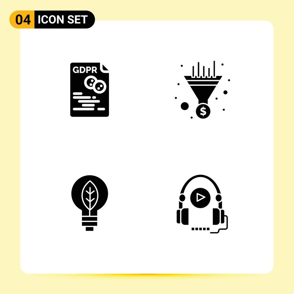 4 User Interface Solid Glyph Pack of modern Signs and Symbols of data nature gdpr funnel power Editable Vector Design Elements