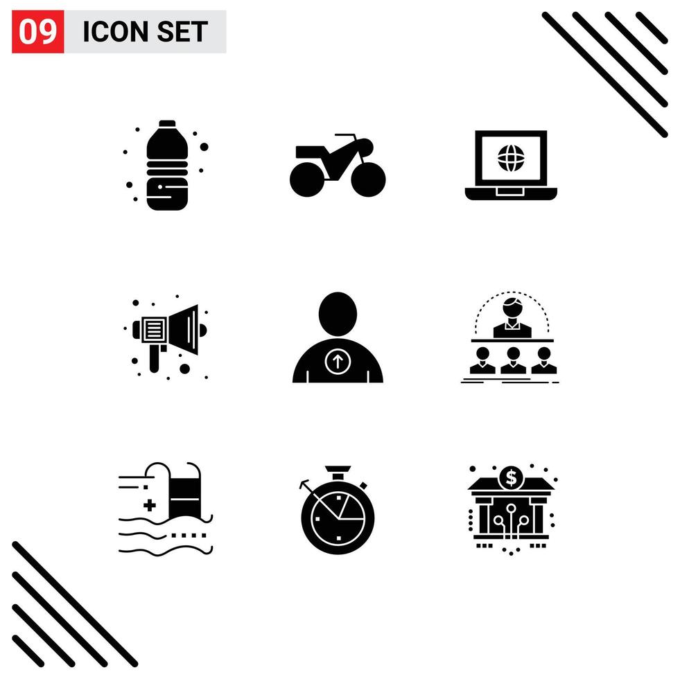 9 Universal Solid Glyphs Set for Web and Mobile Applications user avatar globe speaker school Editable Vector Design Elements