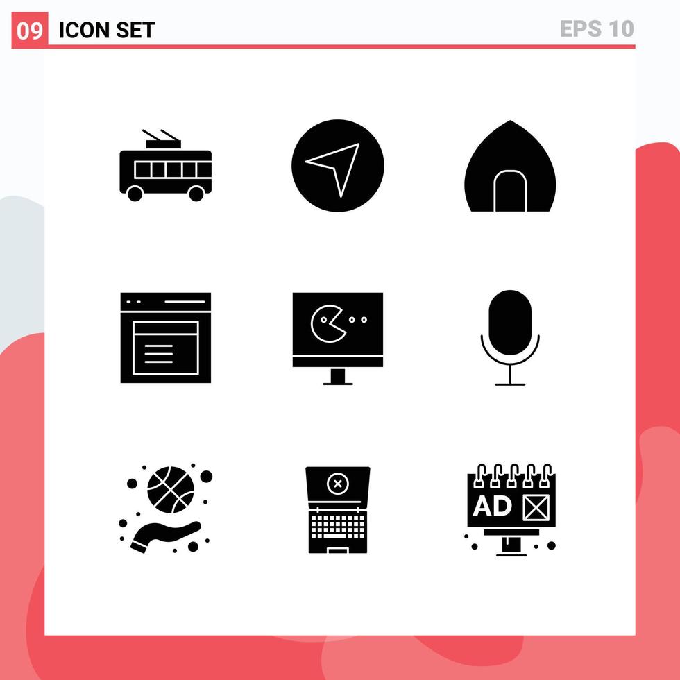User Interface Pack of 9 Basic Solid Glyphs of game user building modal communication Editable Vector Design Elements Free Vector
