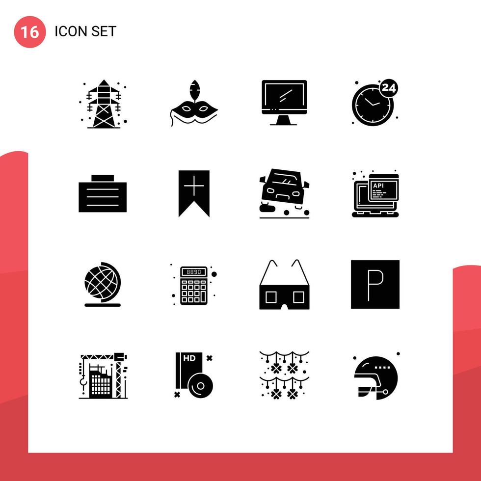 16 Thematic Vector Solid Glyphs and Editable Symbols of case open computer hours pc Editable Vector Design Elements Free Vector