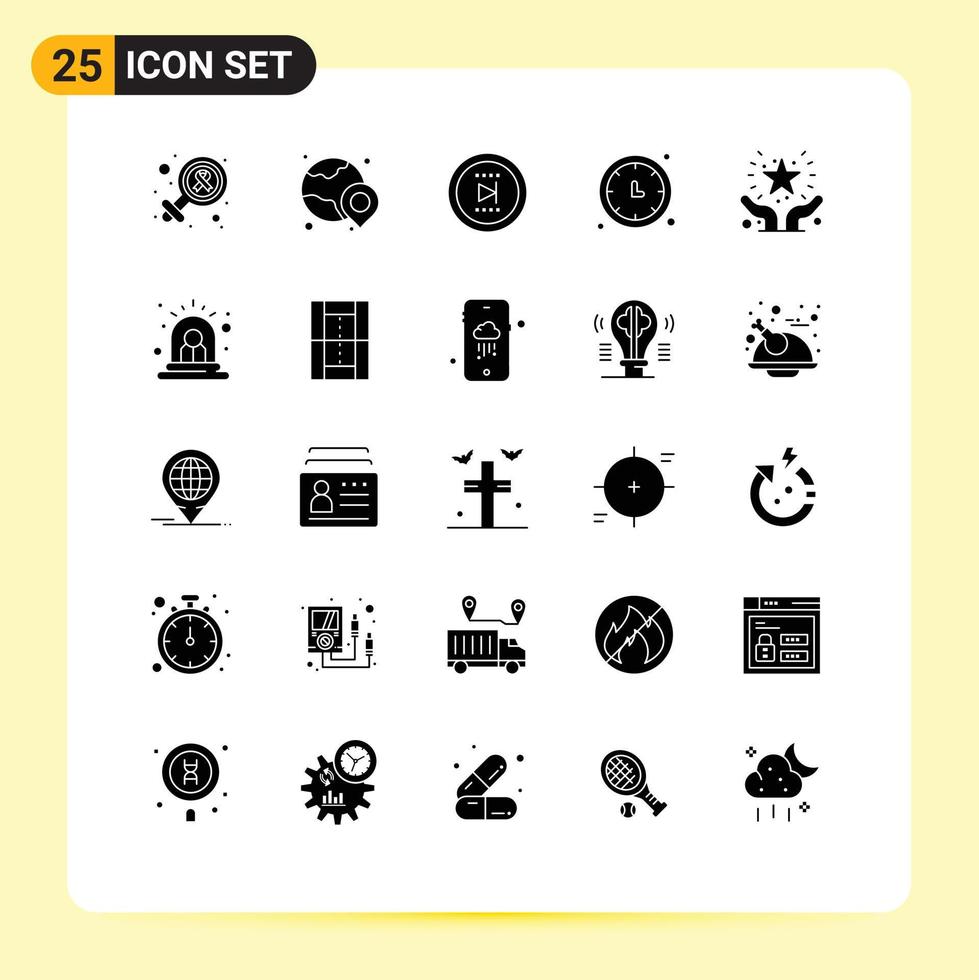 User Interface Pack of 25 Basic Solid Glyphs of care timer movie time keeper clock Editable Vector Design Elements