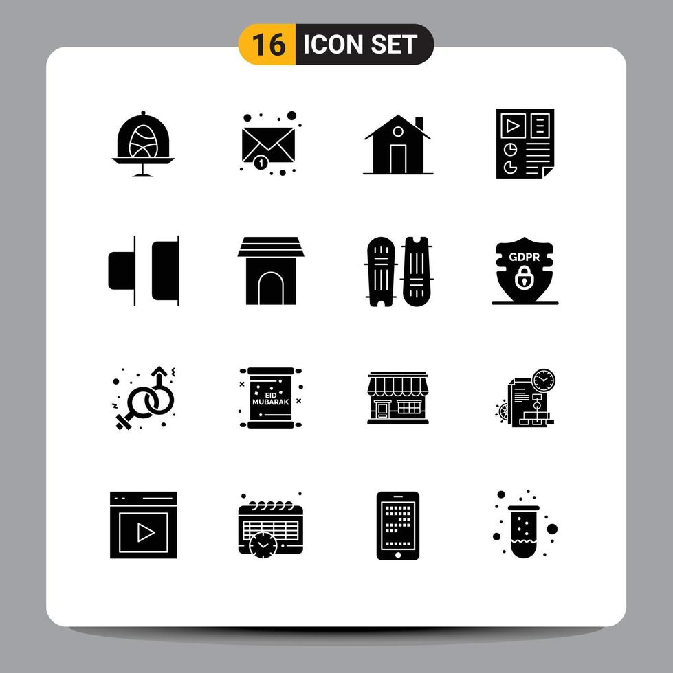 Pictogram Set of 16 Simple Solid Glyphs of distribute report chimney page data Editable Vector Design Elements