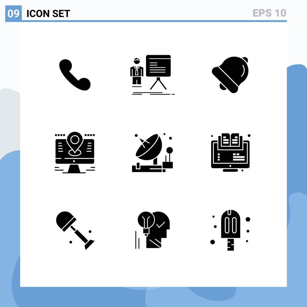 Set of 9 Modern UI Icons Symbols Signs for antenna lcd progress location map Editable Vector Design Elements
