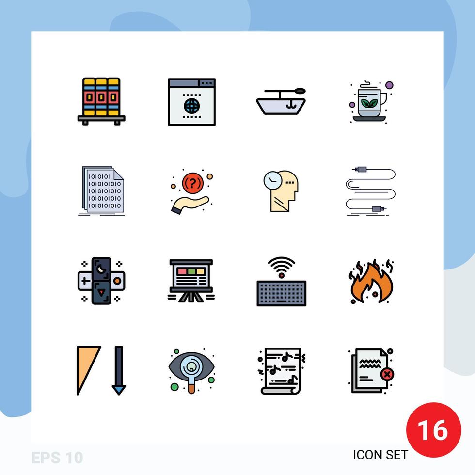 Set of 16 Modern UI Icons Symbols Signs for help document coffee data code Editable Creative Vector Design Elements