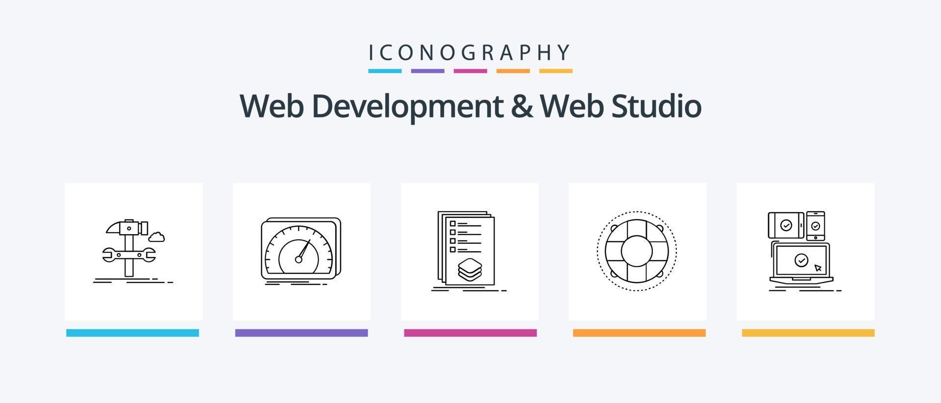 Web Development And Web Studio Line 5 Icon Pack Including mobile. preserver. mail. lifesaver. life. Creative Icons Design vector