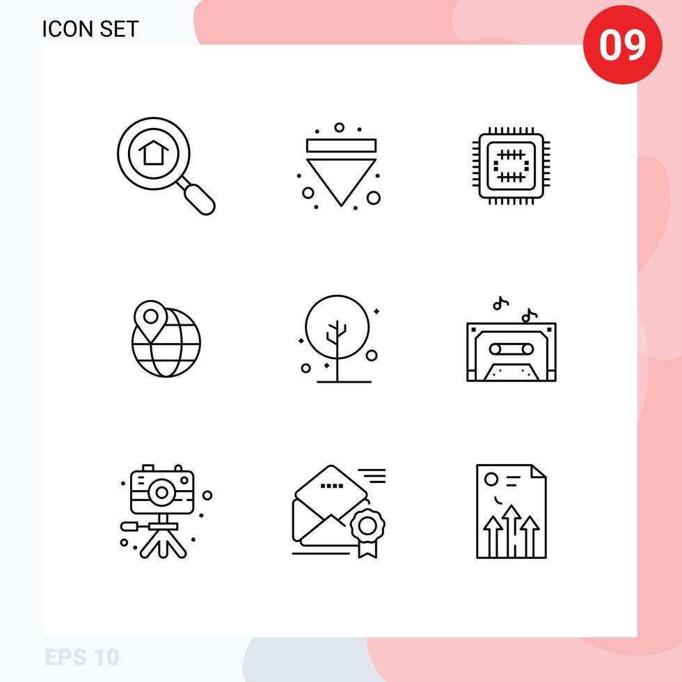 9 User Interface Outline Pack of modern Signs and Symbols of growth farming tech internet map Editable Vector Design Elements Free Vector