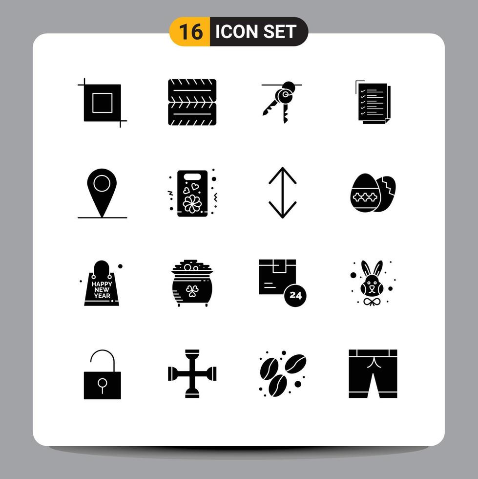 Group of 16 Modern Solid Glyphs Set for gift interface keys map notepad Editable Vector Design Elements