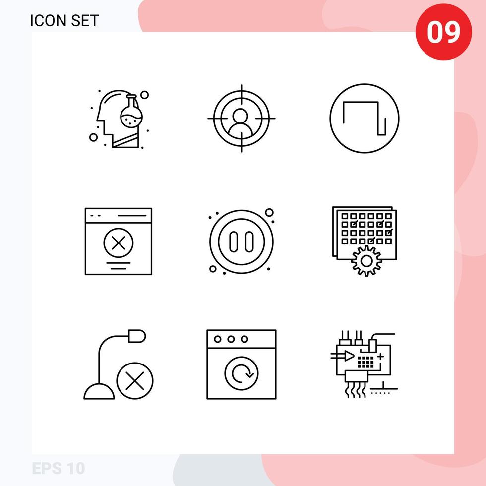 Outline Pack of 9 Universal Symbols of multimedia user sound message error Editable Vector Design Elements