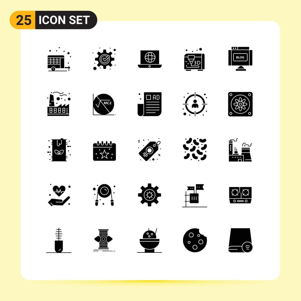 Modern Set of 25 Solid Glyphs and symbols such as write edit laptop blog modeling Editable Vector Design Elements