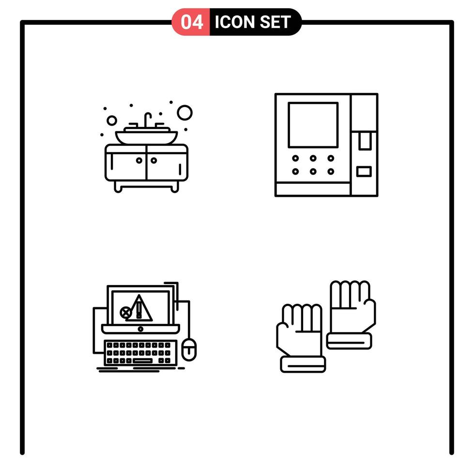 4 User Interface Line Pack of modern Signs and Symbols of bathroom failure atm computer glove Editable Vector Design Elements Free Vector