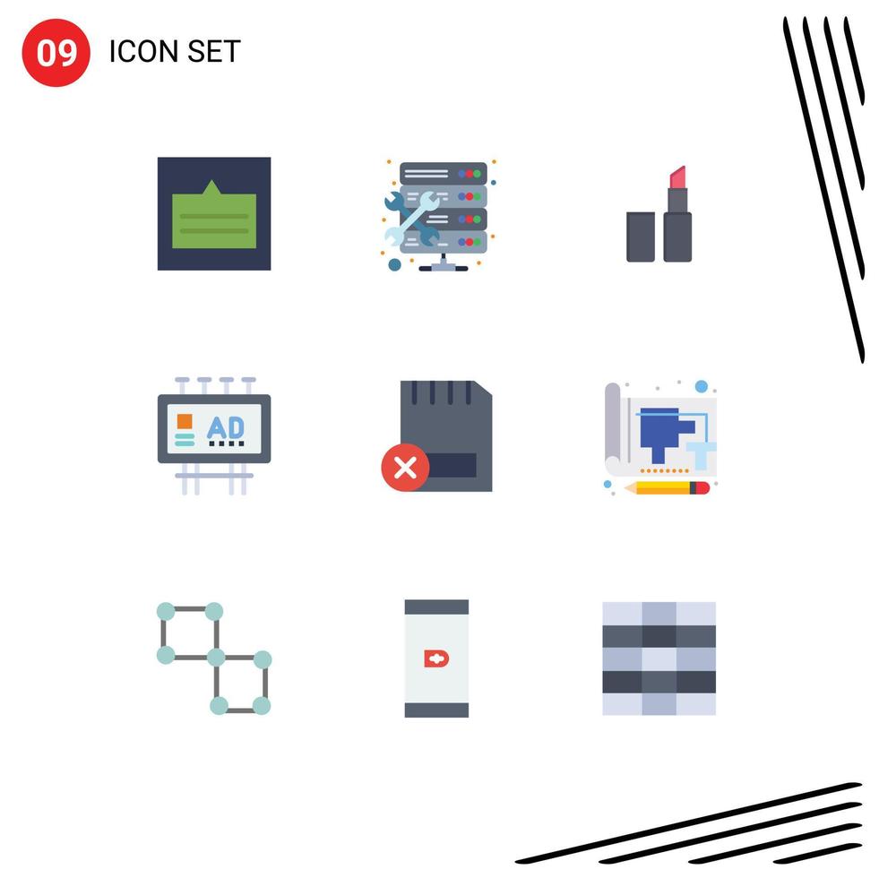 Set of 9 Modern UI Icons Symbols Signs for computers publicity setting promotion billboard advertisement Editable Vector Design Elements