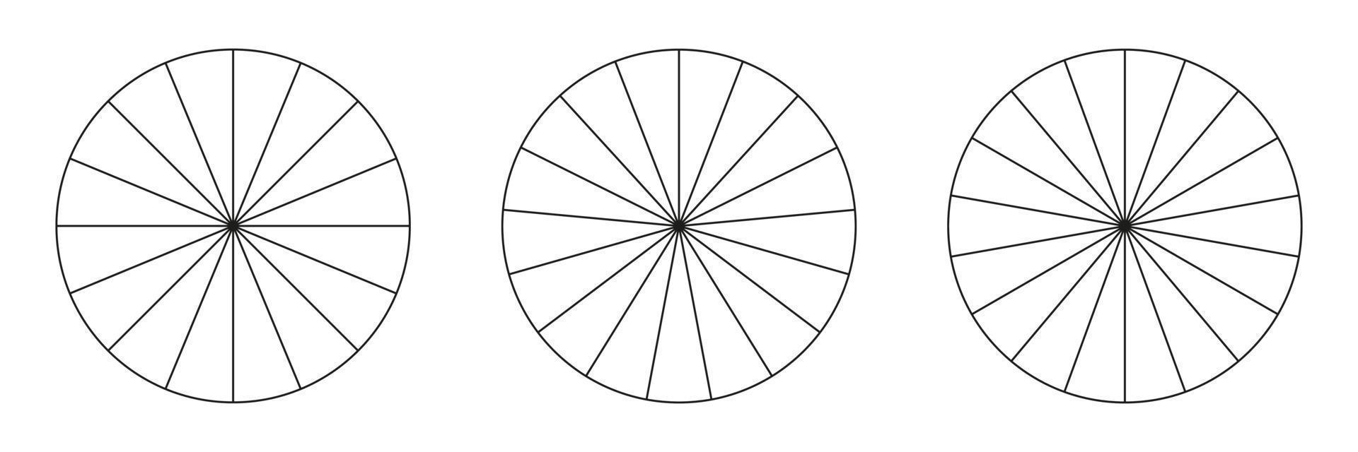 Pie chart, diagram set. Simple business chart. Sixteen, seventeen and eighteen sections or steps. Circle icons for infographic, presentation, web design, user interface. Pro Vector