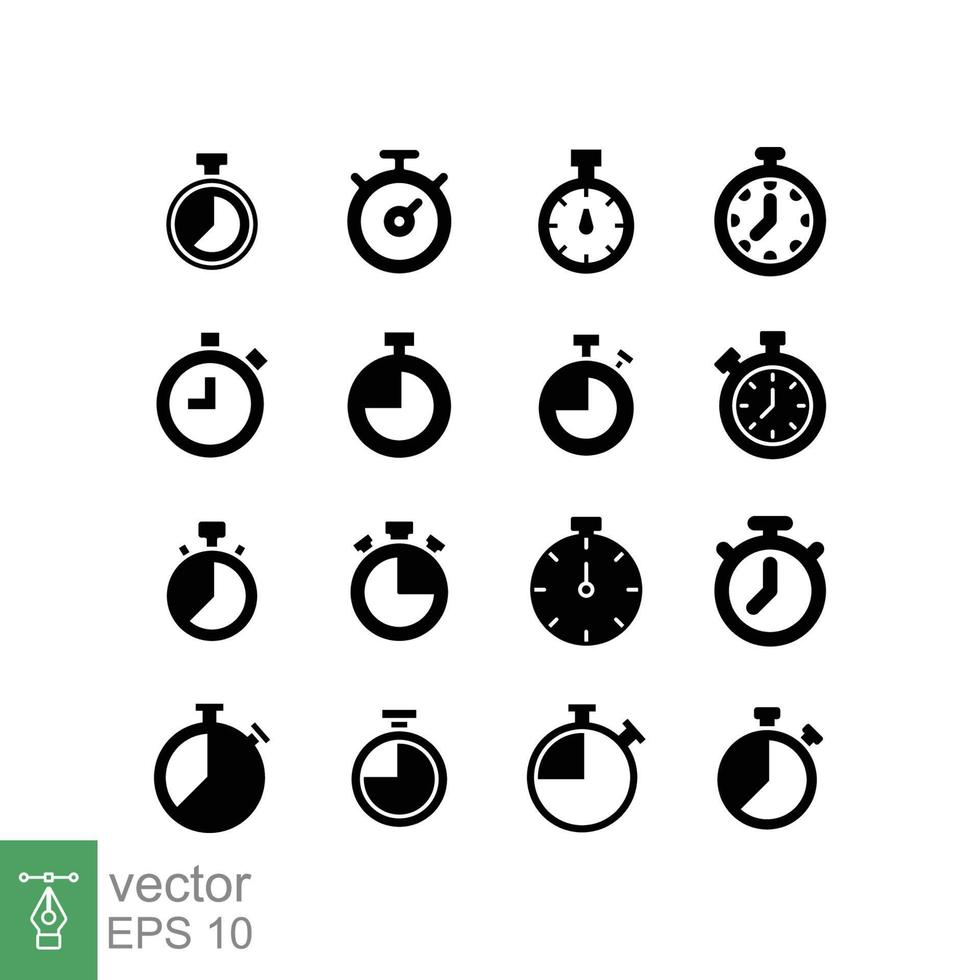 Stopwatch icon set. Simple solid style. Timer symbol, clock, countdown, speed time concept. Glyph vector illustration collection isolated on white background. EPS 10. Pro Vector