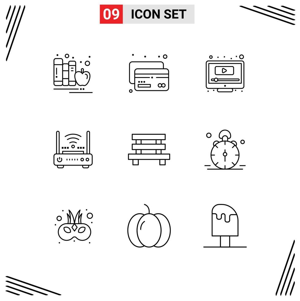 9 Universal Outlines Set for Web and Mobile Applications bench internet computer network router Editable Vector Design Elements