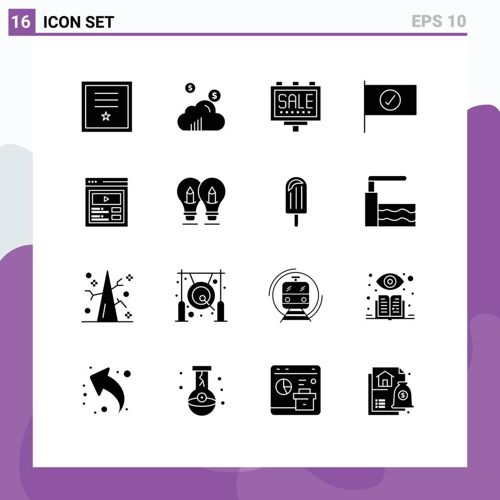 Universal Icon Symbols Group of 16 Modern Solid Glyphs of user interface custom content advertising sign checked Editable Vector Design Elements