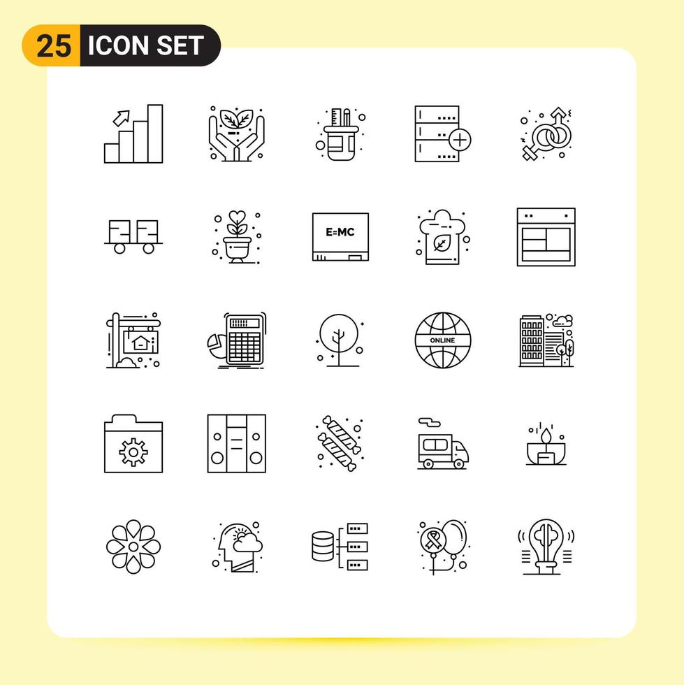 Pack of 25 Modern Lines Signs and Symbols for Web Print Media such as database base plant backup scale Editable Vector Design Elements