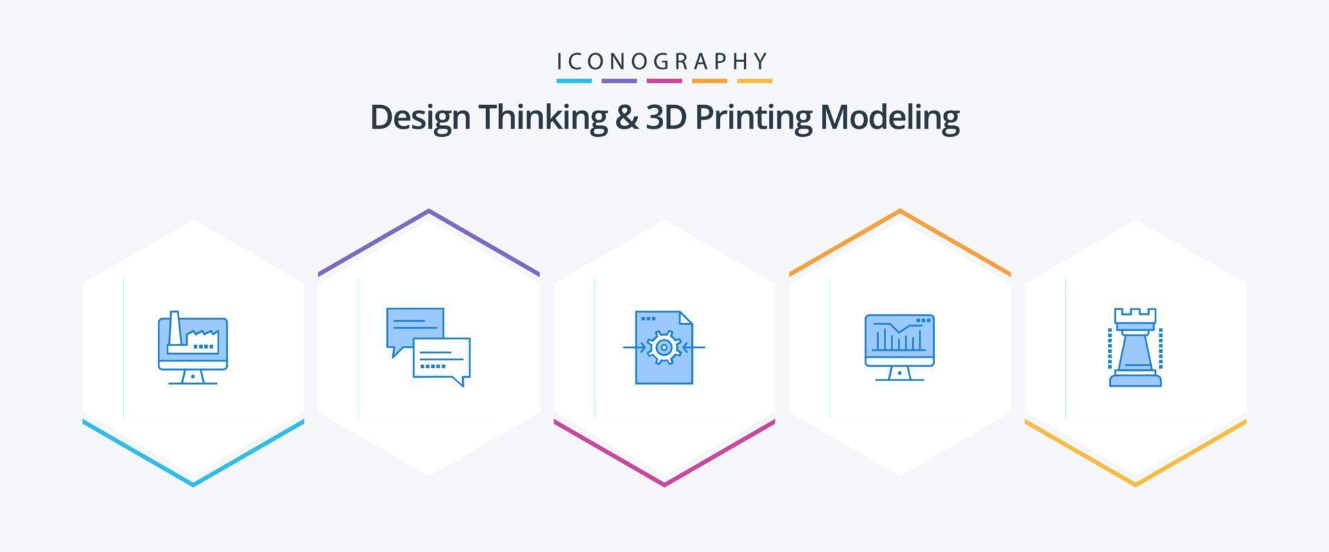 Design Thinking And D Printing Modeling 25 Blue icon pack including games. monitor. file . graph. computer vector