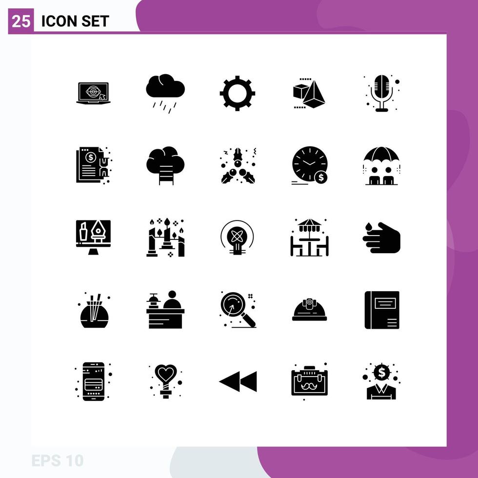 25 Solid Glyph concept for Websites Mobile and Apps contract microphone cog electronics box Editable Vector Design Elements