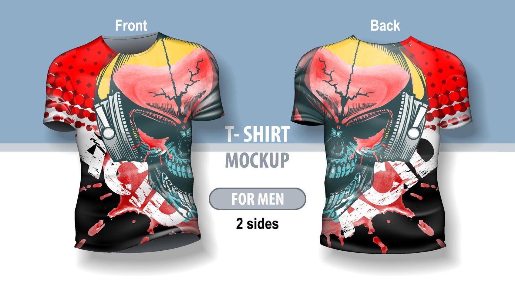 T-shirt for man front and back with abstract image. Mock-up for double-sided printing. Pro Vector