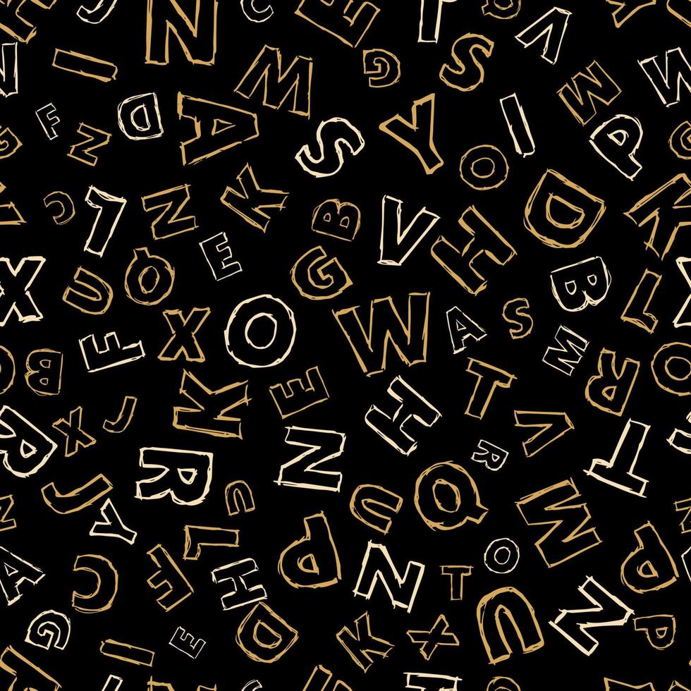Doodle alphabet seamless background. Endless vector pattern with letters on a black background. Pro Vector