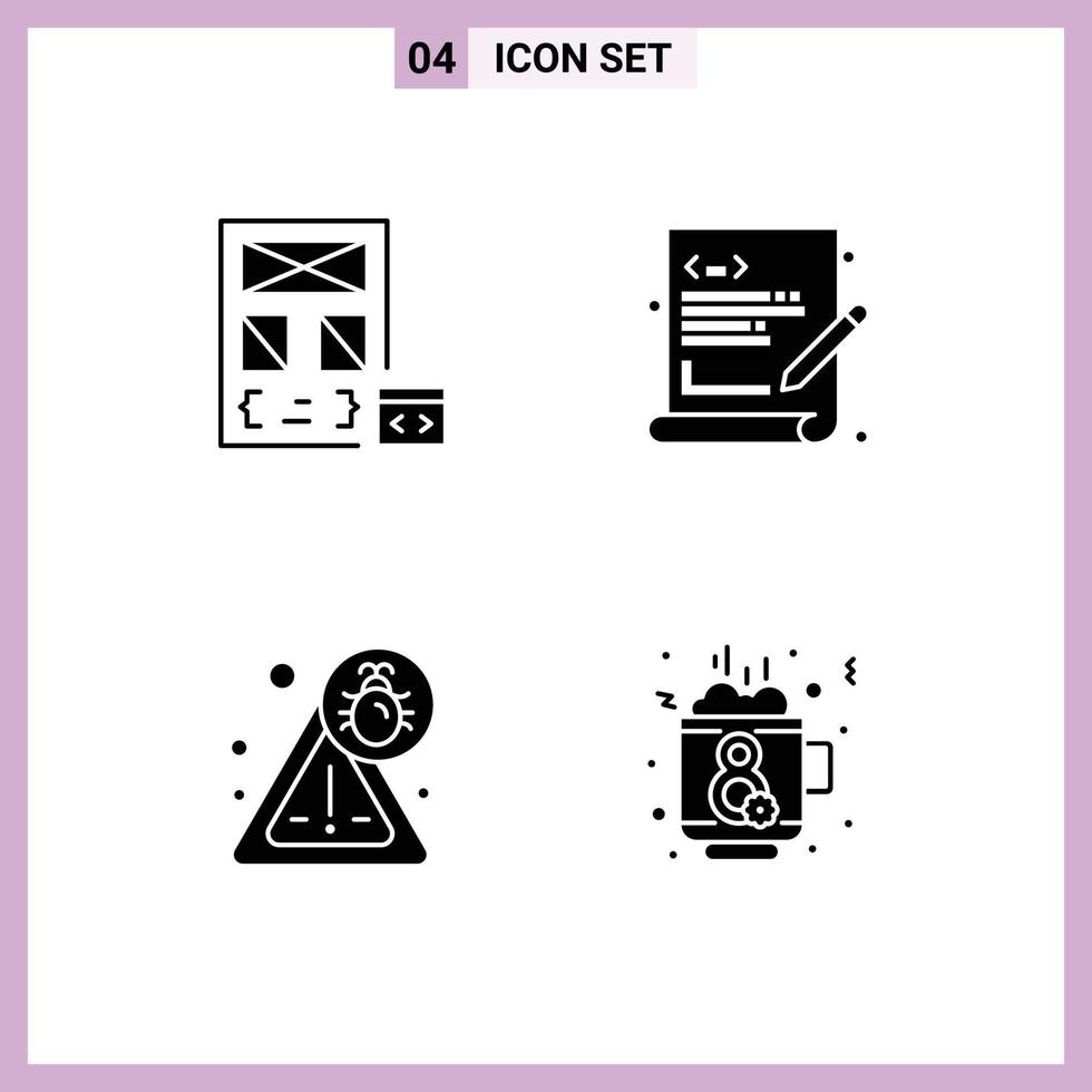 Solid Glyph Pack of 4 Universal Symbols of app bug development language virus Editable Vector Design Elements