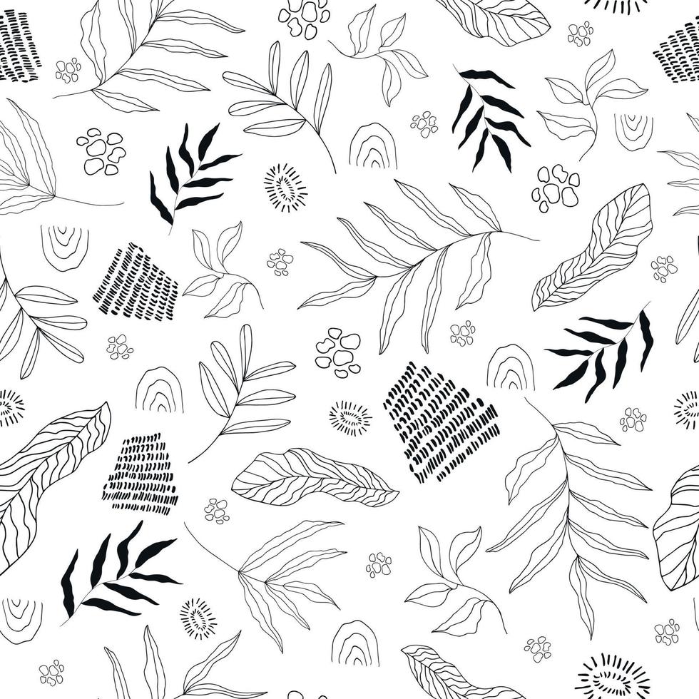 Seamless black and white background with abstract vegetation, branches, leaves and elements in a linear style outline. Vector Pro Vector